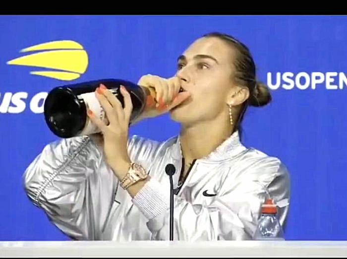 据当时在场的记者回忆,看到萨巴伦卡拿起装满香槟的酒瓶时,还以为她此举是为了向赞助商示好,不曾想白俄罗斯姑娘相当豪放,打开后直接对嘴就喝了起来,好像在一个无人之地。尺度之大,瞬间将记者们给整懵圈了,直到后来所有人反应过来,才笑了起来。