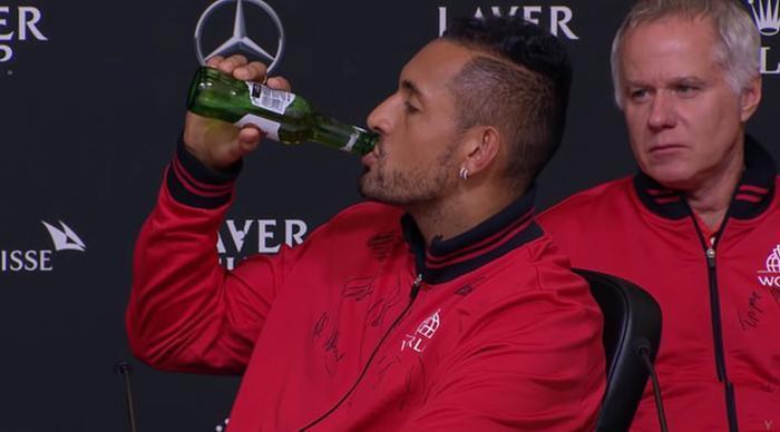 2019年,在拉沃尔杯输给瑞士天王费德勒后,澳洲坏小子为了释放输后的糟糕心情,直接在发布会上当着全球媒体记者的面,旁若无人地豪饮啤酒。此举让外界很多人对他猛批之际,也坐实了他的“网坛坏小子”之名。